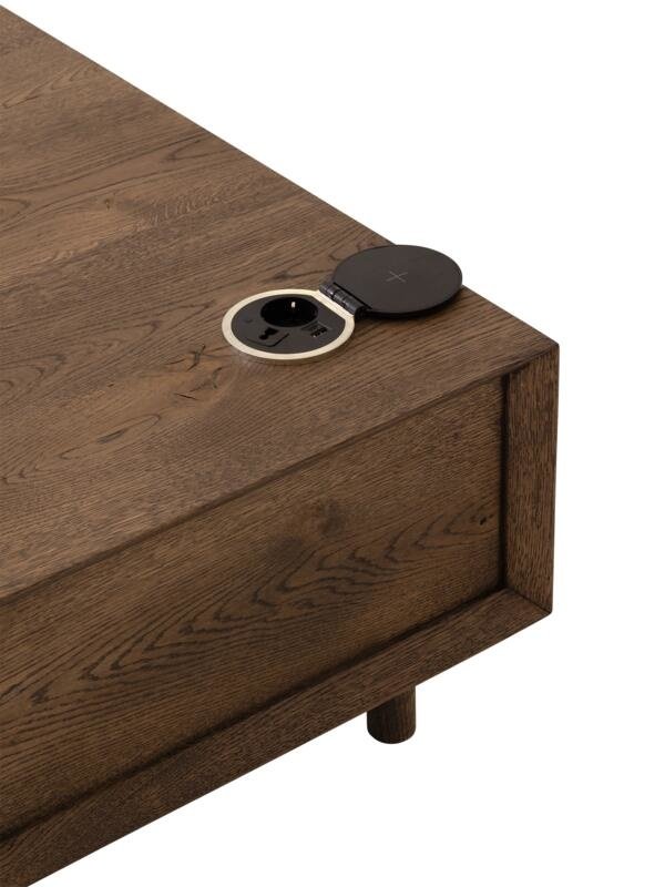 Salontafel Gilmour is de perfecte match voor elementenbank Gilmour. De salontafel is gemaakt van rustiek eikenhout en is verkrijgbaar in verschillende kleuren. De tafel beschikt over een handig stopcontant. Kom langs in de winkel en ontdek alle mogelijkheden.