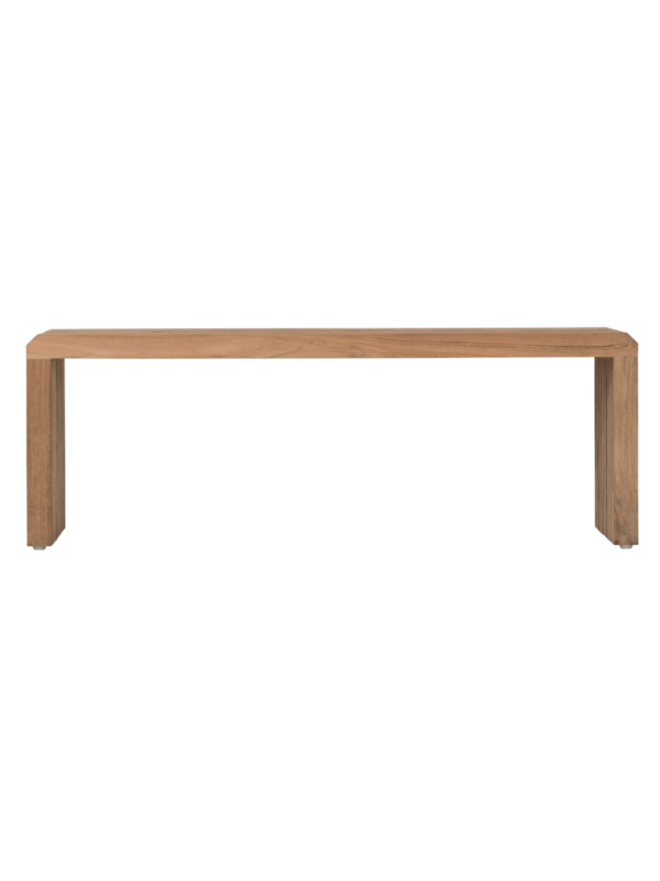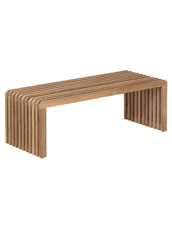 Banktafel Steve is praktisch, stijlvol en multifunctioneel. De tafel is gemaakt van geborsteld teakhout en verkrijgbaar in 90 en 100 cm. Het speelse ontwerp met latjes geeft de tafel een luchtige en eigentijdse uitstraling, waardoor hij moeiteloos in ieder interieur past.