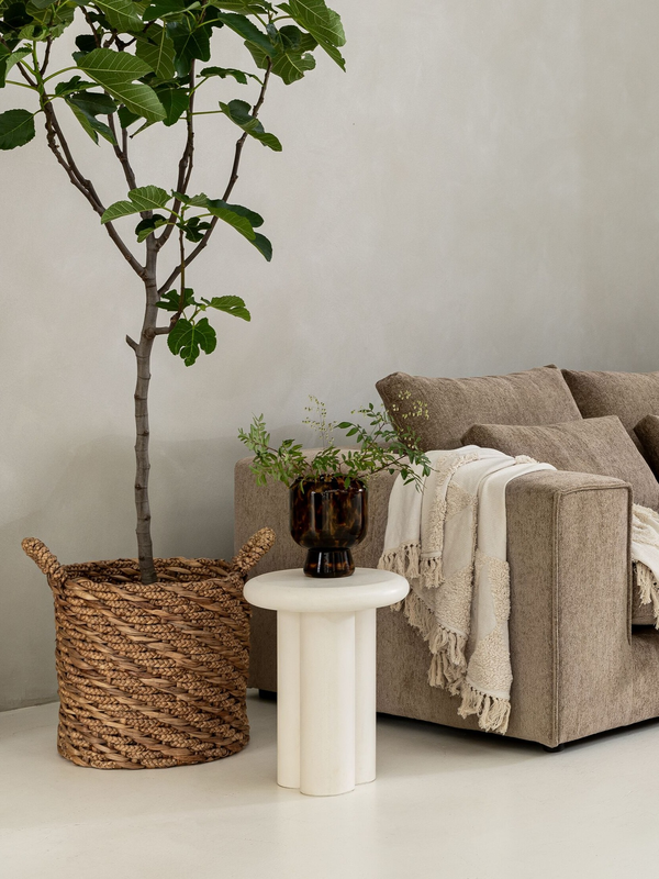 Bijzettafel Unite voelt zich, dankzij zijn organische vormen en minimalistische design, helemaal thuis in een Japandi interieur. Unite is gemaakt van fiber cement, een bouwmateriaal wat bestaat uit een mengeling van zand, water, cement en vezels waar een oersterk materiaal met een unieke steenstructuur uit komt. Combineer de bijzettafel met de bijpassende salontafel.