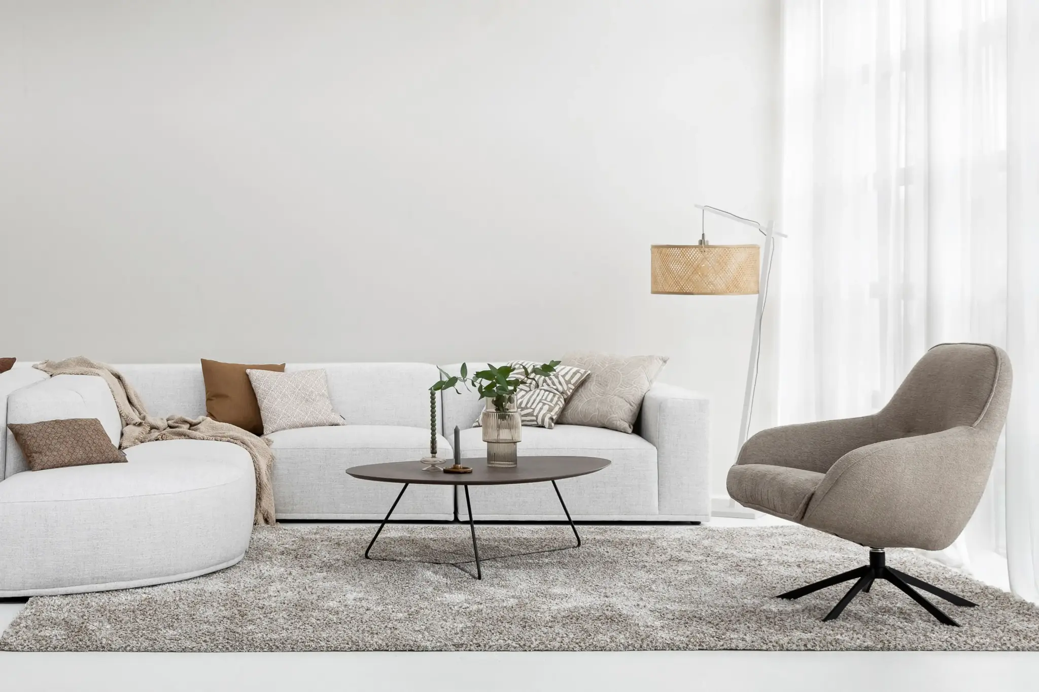 Let ook op de 60 tot 90 cm vrije ruimte behoud tussen de bank en de fauteuil. Dit creëert een goede doorloop en geeft de ruimte een luchtige uitstraling.