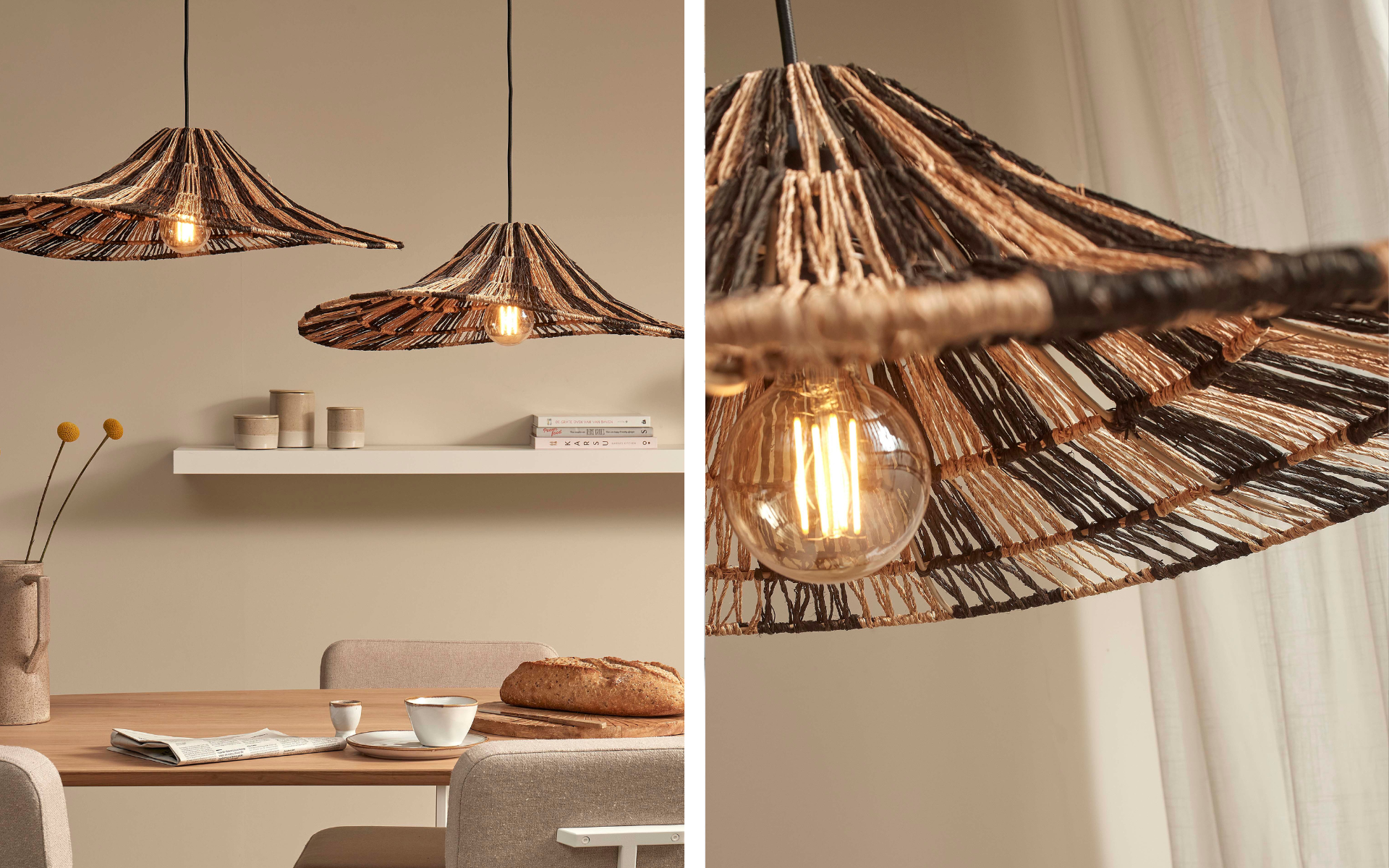 Good & Mojo haalt inspiratie uit de natuur, zelfs de namen van de lampen verwijzen naar rivieren, bergen en eilanden. De materialen zijn bewust gekozen om zo min mogelijk impact op het milieu te hebben: bamboe, rotan, zeegras, jute en eco-linnen vormen samen de basis van de collectie. Hiermee creëren ze lampen die, naast warmte en sfeer, een tropisch of bohemian gevoel aan je interieur geven.