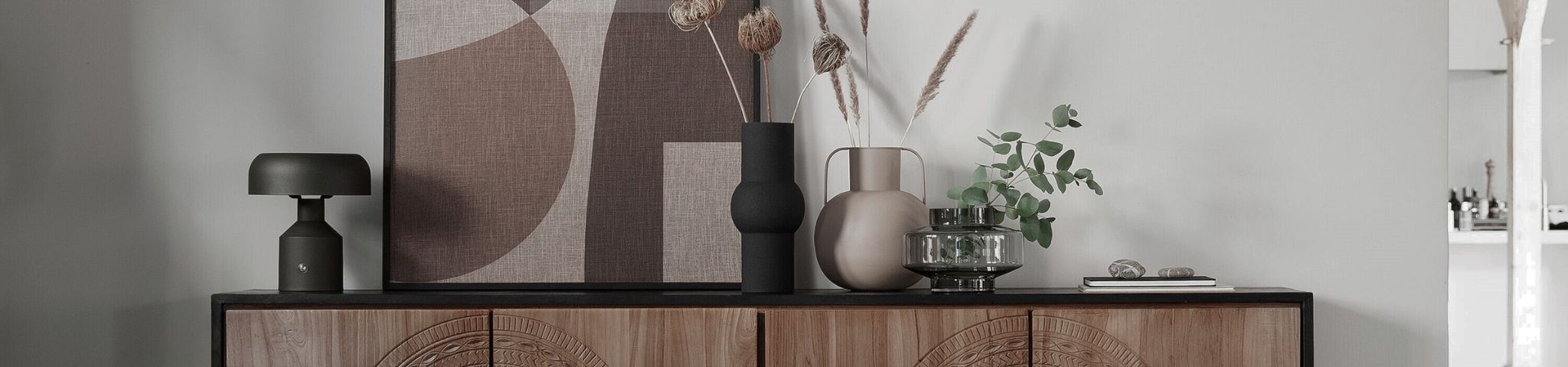 Planten of droogbloemen brengen leven in je inrichting. Het is een makkelijke manier om wat kleur toe te voegen en de styling van je dressoir helemaal mee af te maken. Het fijne aan planten en (droog)bloemen is dat je het makkelijk kan afwisselen per seizoen. Zo geef je je dressoir steeds een andere uitstraling, met dezelfde basis.