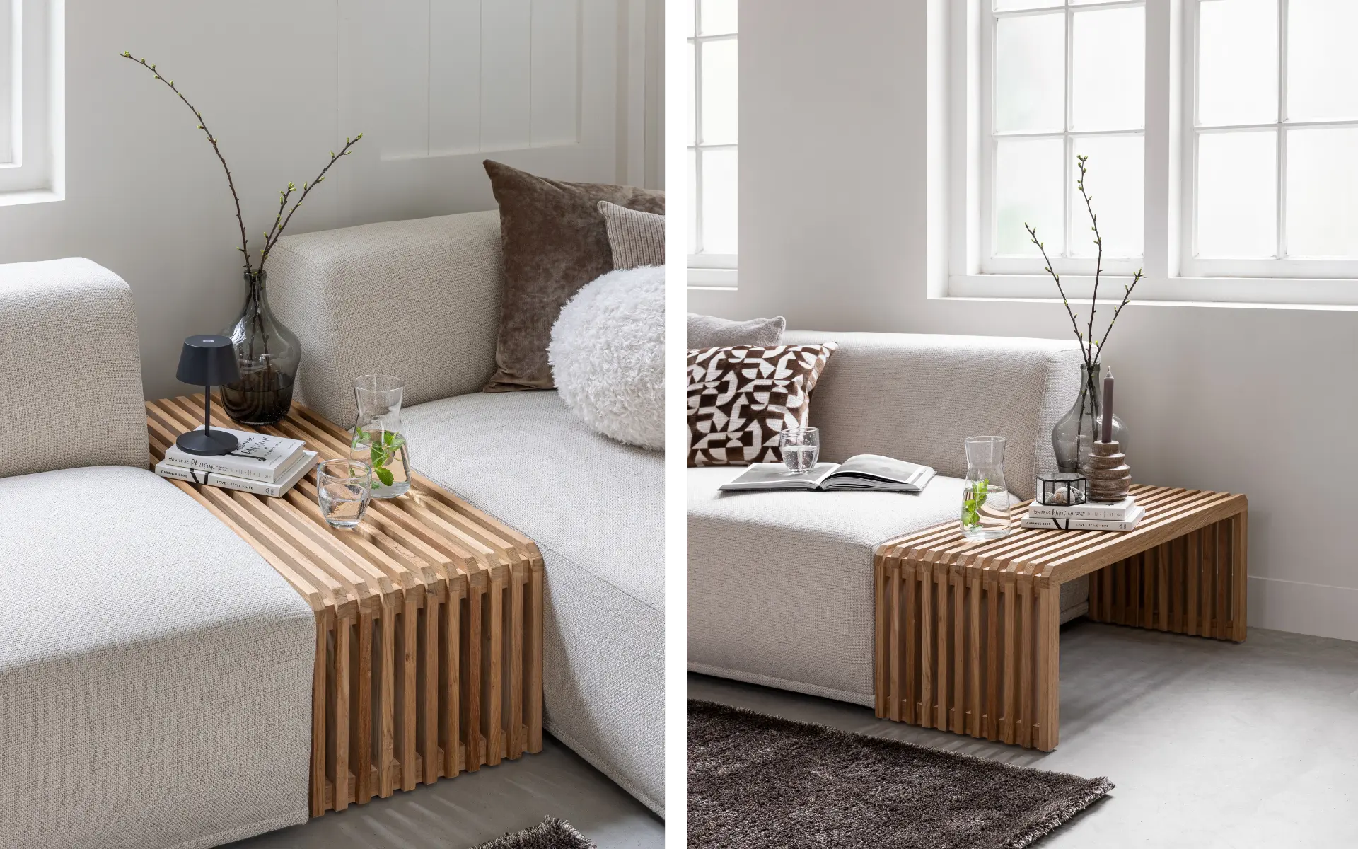 De Steve tafels laten zich graag combineren. Combineer een banktafel met de salontafel set en laptoptafel om een samenhangend geheel te creëren. Door verschillende items uit deze collectie te combineren ontstaat er balans en rust in de ruimte, zonder dat je daar veel voor hoeft te doen.