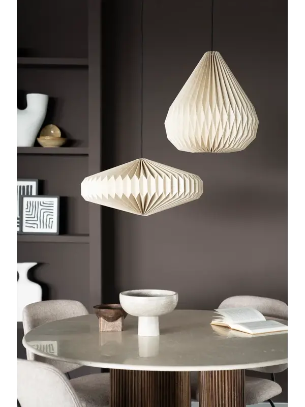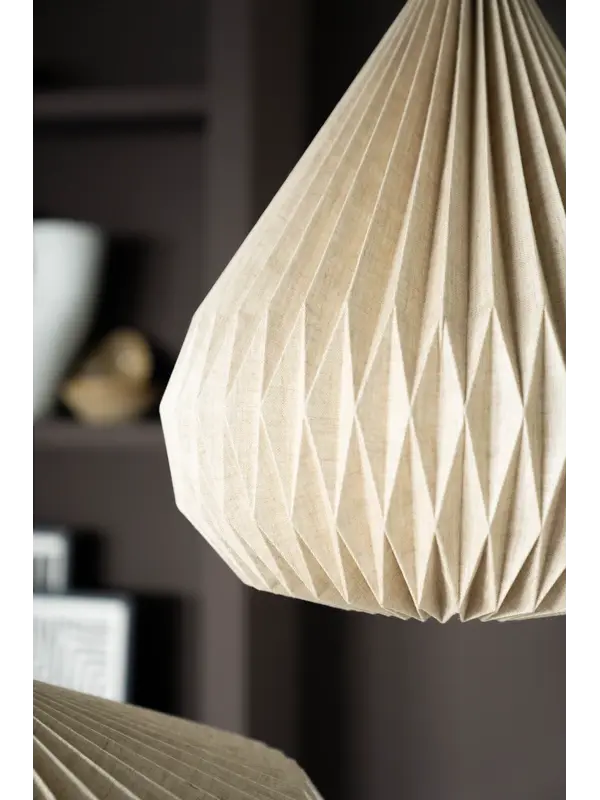 Hanglamp Zuki heeft een eigentijds karakter en geeft een warme vloed in de ruimte door de lampenkap die is gemaakt van papier en linnen. Ook leuk om te combineren met de rest van de Zuki collectie! De hanglamp heeft een afmeting van 45xØ41 cm.
