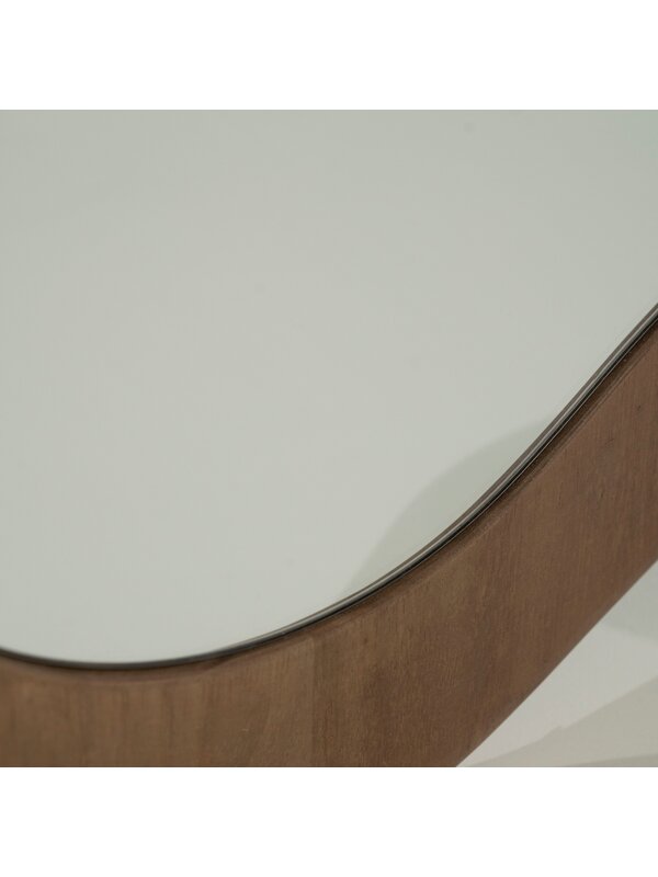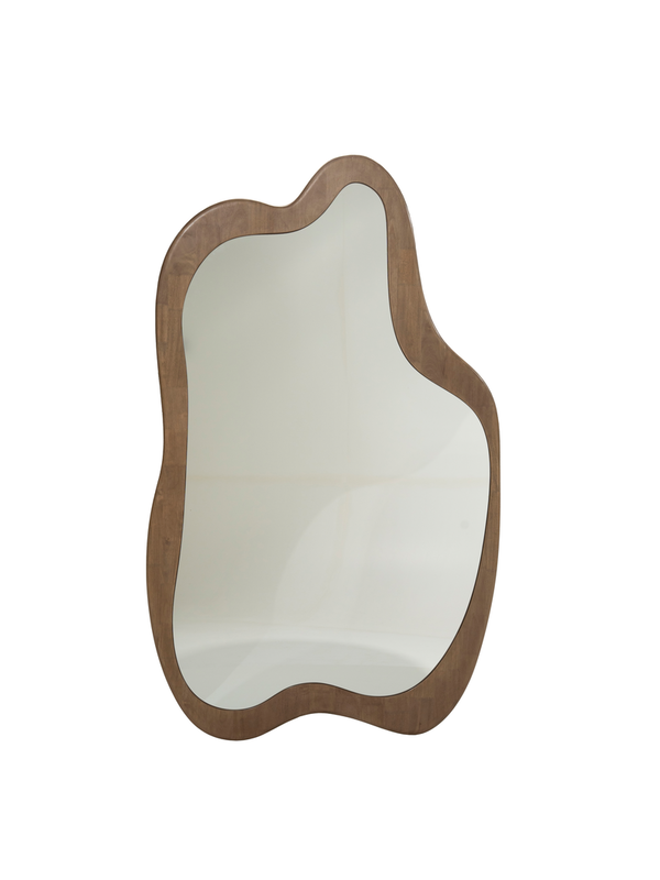 De organische vormen van spiegel Laban zorgen voor een speels accent aan de muur. Het warme houten frame maakt de spiegel extra uitnodigend en sfeervol. Perfect voor in de hal, slaapkamer of woonkamer. Verkrijgbaar in verschillende afmetingen.