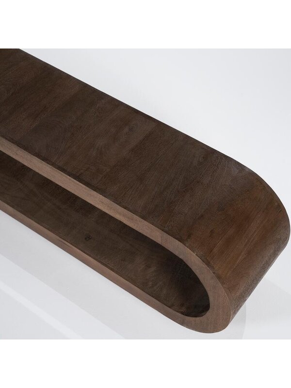 De Elora serie van het merk By-Boo combineert ovale vormen met een robuuste uitstraling. Gemaakt van mangohout in een donkerbruine kleur, wat zorgt voor een moderne retrolook die perfect past binnen verschillende interieurstijlen.