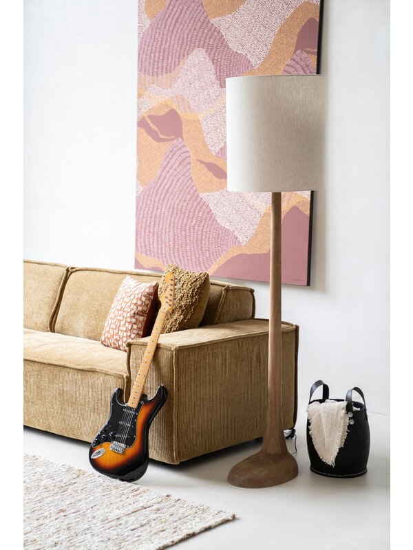 Vloerlamp Rine combineert eenvoud met karakter. De lamp is gemaakt van hout en heeft een vloeiende, slanke vorm met een subtiel afgeronde voet. De natuurlijke houttint brengt warmte in je interieur, terwijl de lichte, cilindervormige kap zorgt voor een zachte en sfeervolle verlichting. Een tijdloos design dat moeiteloos past in verschillende woonstijlen.