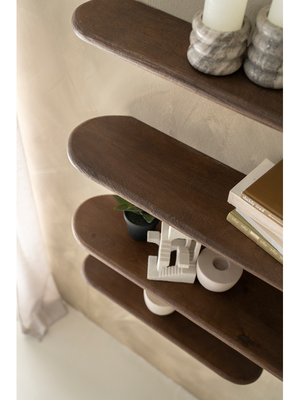 De massief mangohouten wandplanken van By-Boo zijn in drie verschillende kleuren en afmetingen te krijgen waardoor je fijn kan mixen&matchen om jouw muur wat aanvulling te geven! De afmetingen van Tre 1 zijn 3x49x15 cm.