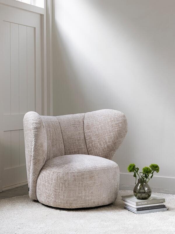Draaifauteuil Thames heeft een elegante en moderne uitstraling. De stoel heeft een zachte, grove stof en een draaimechanisme voor extra flexibiliteit. Met zijn brede zit biedt deze fauteuil optimaal comfort voor ontspanning. Het stijlvolle ontwerp past perfect in diverse interieurstijlen en voegt een vleugje luxe toe aan elke kamer.
