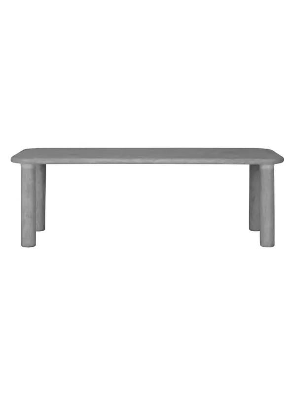 Eettafel Clio heeft een afmeting van 76x230x100 cm en heeft een lichtgrijze kleur. De eettafel is ook verkrijgbaar in een donkergrijze kleur, een grotere afmeting en in een ronde vorm.