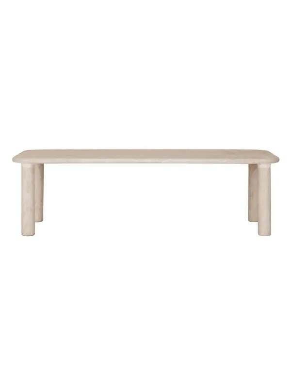 Eettafel Clio heeft een afmeting van 76x260x100 cm en heeft een kalk kleur. De eettafel is ook verkrijgbaar in een lichtgrijze, donkergrijze en kalk kleur, en ook allemaal in een kleiner vormaat, of een ronde vorm.