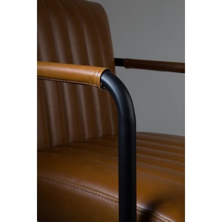Eetkamerstoel Stitched van het merk Dutchbone heeft een comfortabele zit en is bekleed met een lederlook met een verticale stikking in de rug. Het zwarte frame maakt de stoel helemaal af.