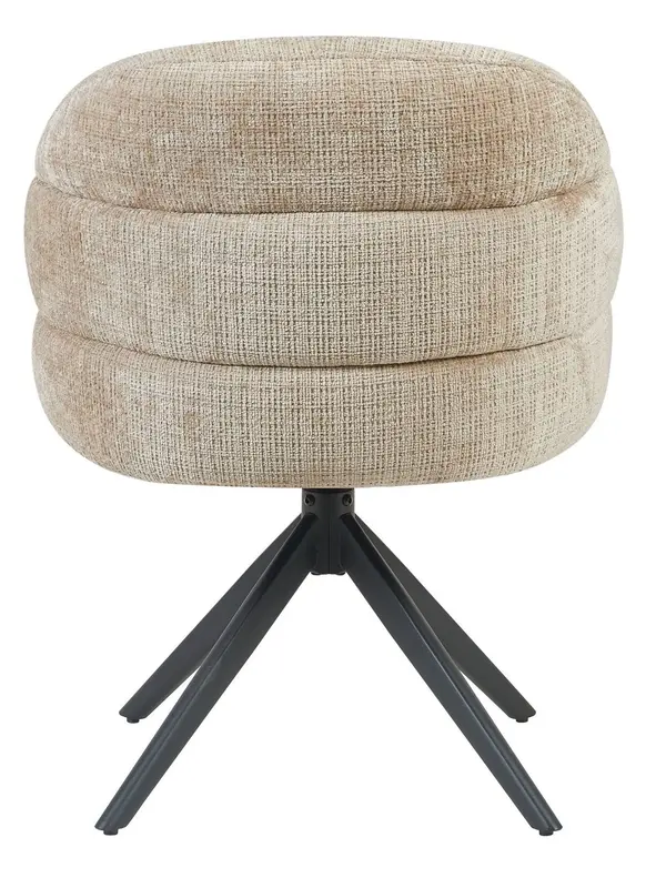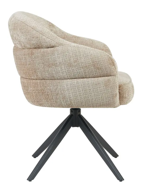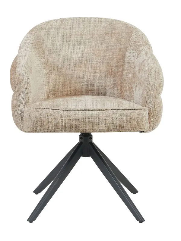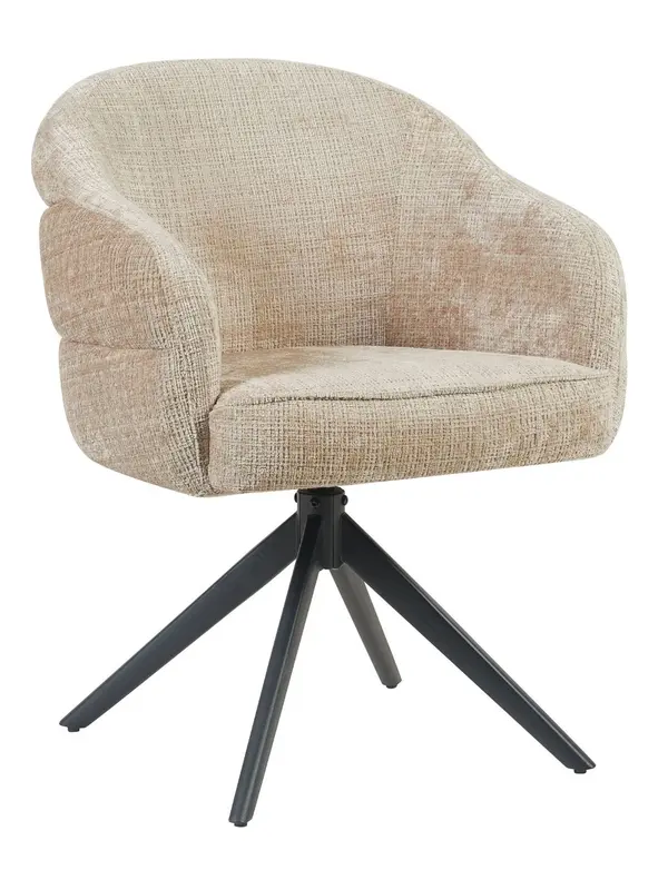 Eetkamerstoel Lio is een stijlvolle draaistoel die comfort en eigentijds design perfect combineert. De ronde vormen zorgen voor een uitnodigende uitstraling, terwijl de draaifunctie extra gemak biedt aan de eettafel. Ideaal voor lange diners en gezellige momenten.