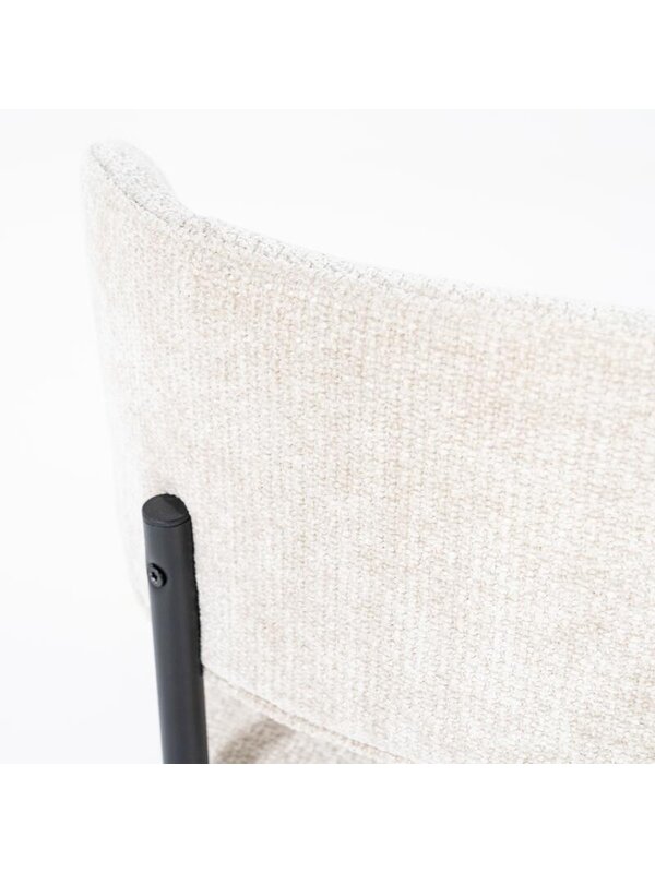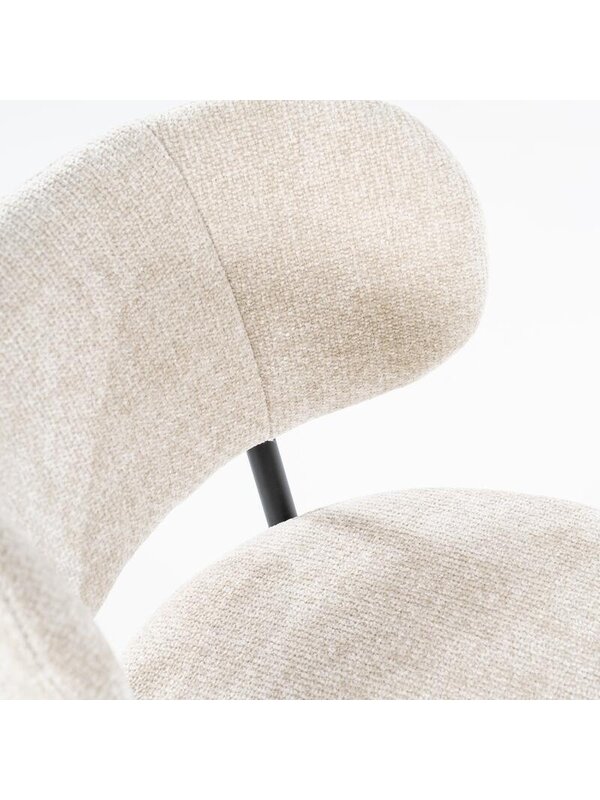 Met eetkamerstoel Otis haal je eigentijdse elegantie en comfort in huis. De stoel is voorzien van een afgeronde rugleuning en een royaal zitkussen, beide bekleed met een zachte, hoogwaardige stof die uitnodigt tot lang tafelen.