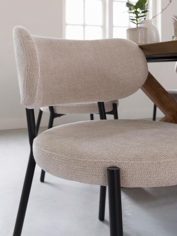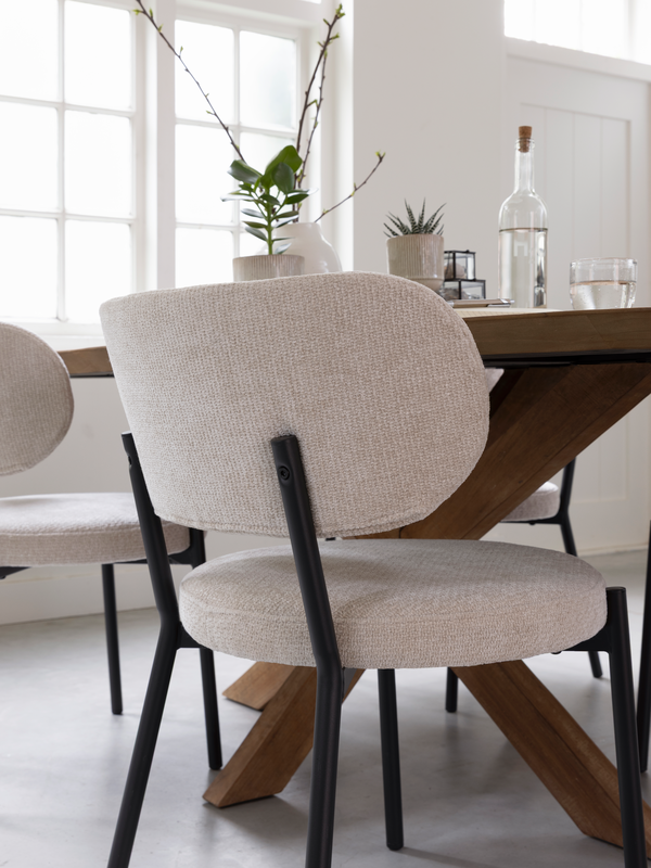 Eetkamerstoel Otis is verkrijgbaar in de kleuren naturel en zand. Mix & match voor een speels effect of kies voor één kleur voor een rustige, harmonieuze uitstraling aan je eettafel. Afname is per 2 stuks.