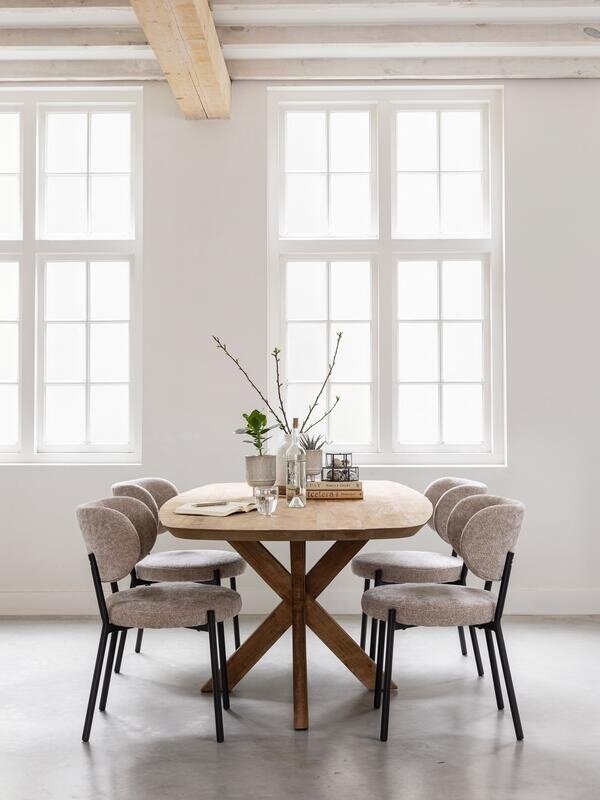 Eetkamerstoel Otis is verkrijgbaar in de kleuren naturel en zand. Mix & match voor een speels effect of kies voor één kleur voor een rustige, harmonieuze uitstraling aan je eettafel. Afname is per 2 stuks.