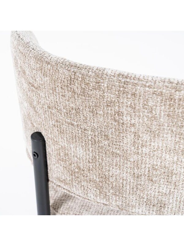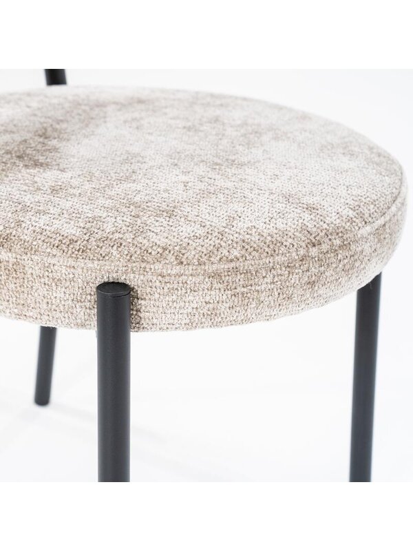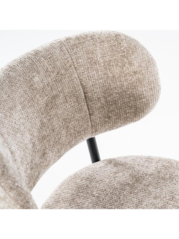 Met eetkamerstoel Otis haal je eigentijdse elegantie en comfort in huis. De stoel is voorzien van een afgeronde rugleuning en een royaal zitkussen, beide bekleed met een zachte, hoogwaardige stof die uitnodigt tot lang tafelen.