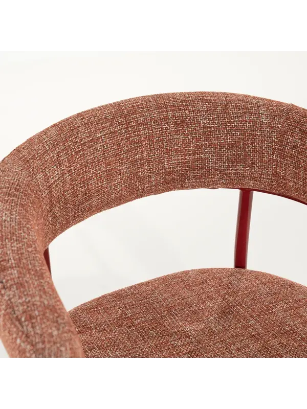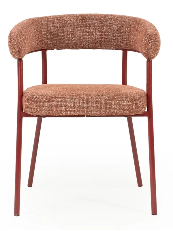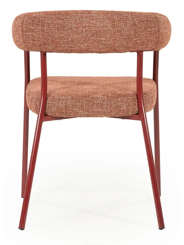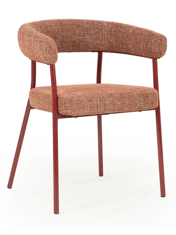 Met eetkamerstoel Yara breng je stijl en comfort naar je eethoek. De ronde rugleuning en het zachte, stevige zitkussen zorgen voor een comfortabele zit, terwijl het slanke metalen frame een moderne uitstraling geeft. Wat Yara extra bijzonder maakt, is dat het metalen frame perfect matcht met de kleur van de bekleding. Dit zorgt voor een mooi samenhangend geheel.