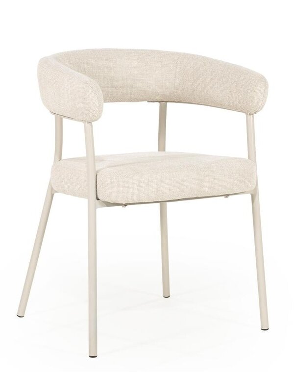 Eetkamerstoel Yara is bekleed met een hoogwaardige stof en verkrijgbaar in de kleuren naturel, zand en brique. Ook leuk om met elkaar te combineren! Afname is per 2 stuks.