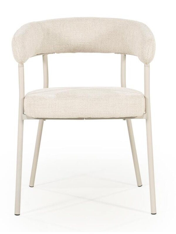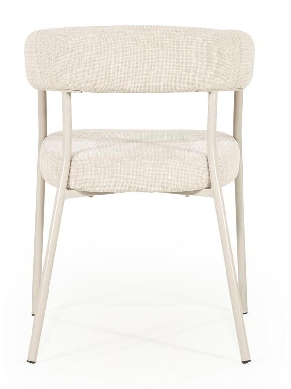 Met eetkamerstoel Yara breng je stijl en comfort naar je eethoek. De ronde rugleuning en het zachte, stevige zitkussen zorgen voor een comfortabele zit, terwijl het slanke metalen frame een moderne uitstraling geeft. Wat Yara extra bijzonder maakt, is dat het metalen frame perfect matcht met de kleur van de bekleding. Dit zorgt voor een mooi samenhangend geheel.