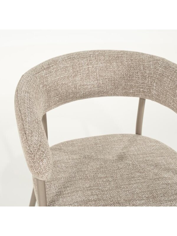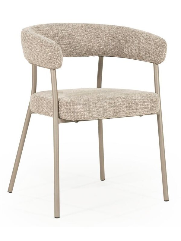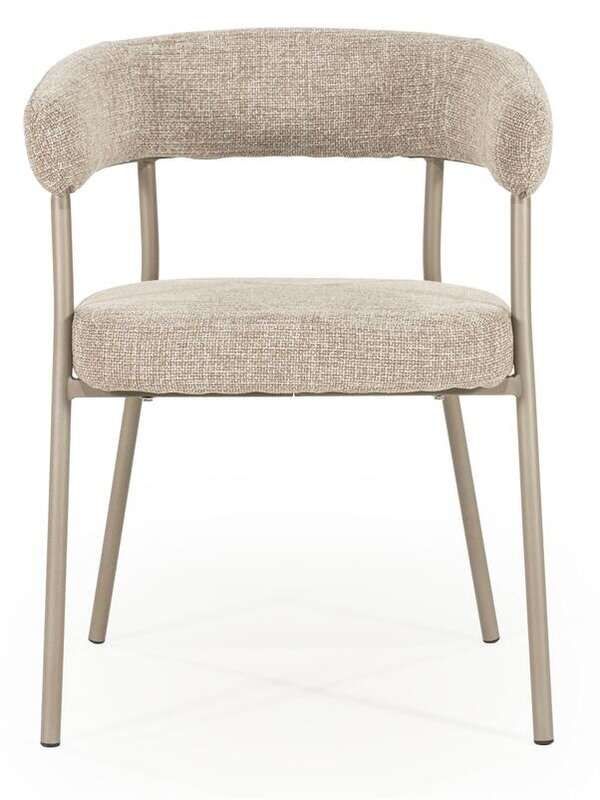 Eetkamerstoel Yara is bekleed met een hoogwaardige stof en verkrijgbaar in de kleuren naturel, zand en brique. Ook leuk om met elkaar te combineren! Afname is per 2 stuks.
