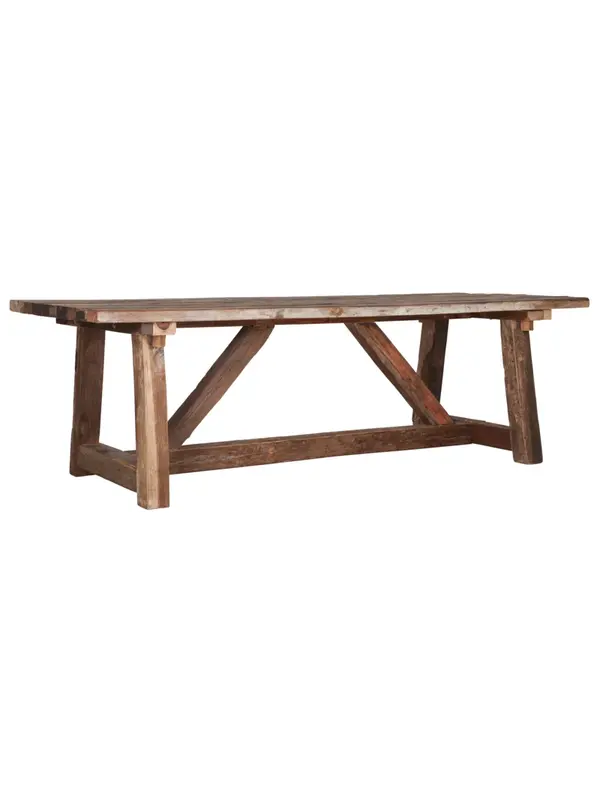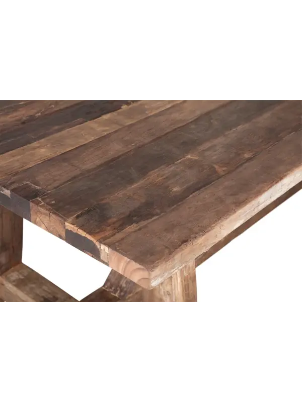 Eettafel Rustico is een robuuste houten eettafel. De combinatie van verschillende houtsoorten, geeft elke Rustico tafel zijn eigen unieke uitstraling. De tafel heeft een afmeting van 78x250x100 cm en heeft een overstek van 25 cm. Kom langs in de winkel en kies jou eigen tafelblad uit.