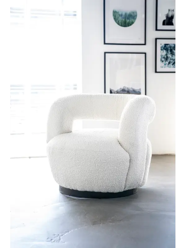Met fauteuil Sharon van het merk Eleonora kan je alle kanten op. De fauteuil is bekleed met een trendy boucle stof en verkrijgbaar in verschillende kleuren. De draaibare zitting biedt extra comfort.