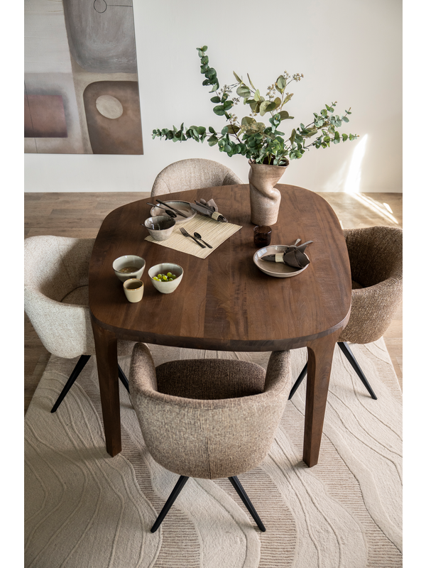 Eettafel Taylor van het merk Eleonora is gemaakt van mangohout en ontworpen met vloeiende, organische vormen. Dit zorgt voor warmte en verfijning in elke eetruimte. Dankzij het tijdloze ontwerp past deze tafel perfect in de scandinavische en japandi woonstijl.