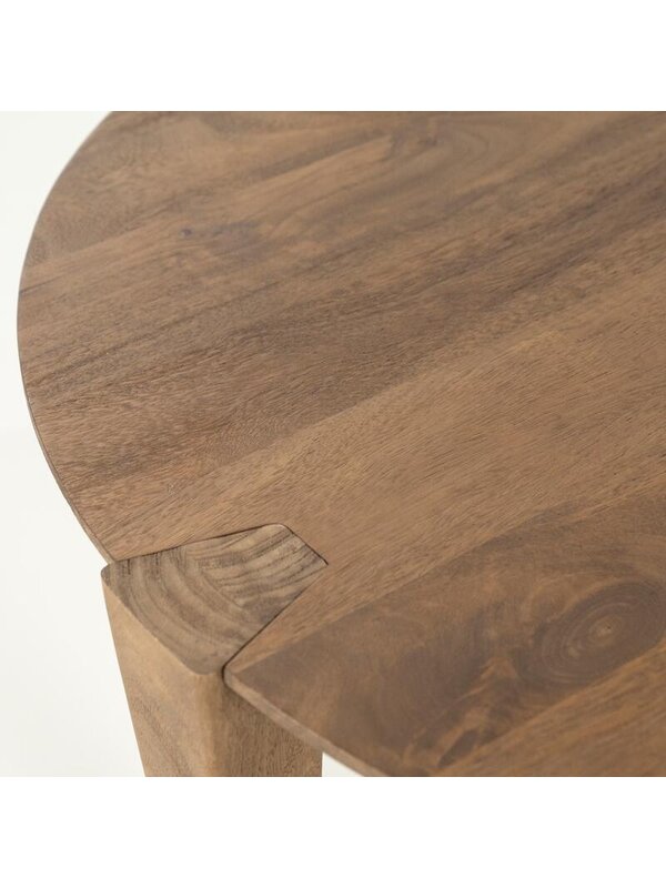 Salontafel Davina van het merk Eleonora is een stijlvolle tafel met een uniek design. Gemaakt van mangohout straalt de tafel warmte en karakter uit. Het ronde blad rust op drie schuingeplaatste poten die op een subtiele manier in het blad overgaan. Combineer de verschillende formaten voor een speels geheel.