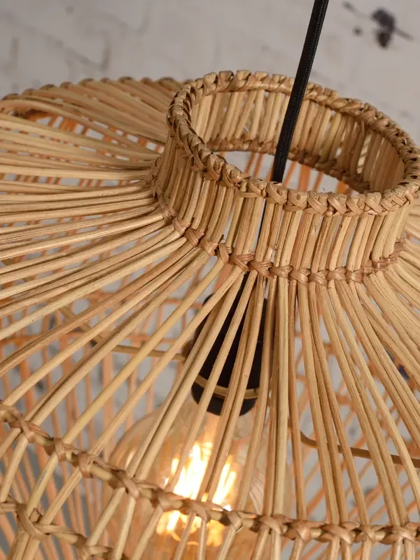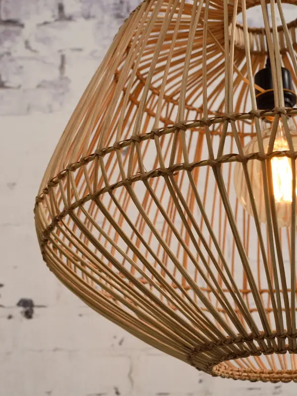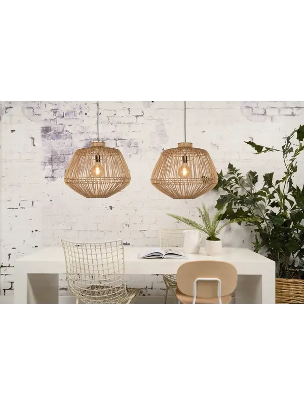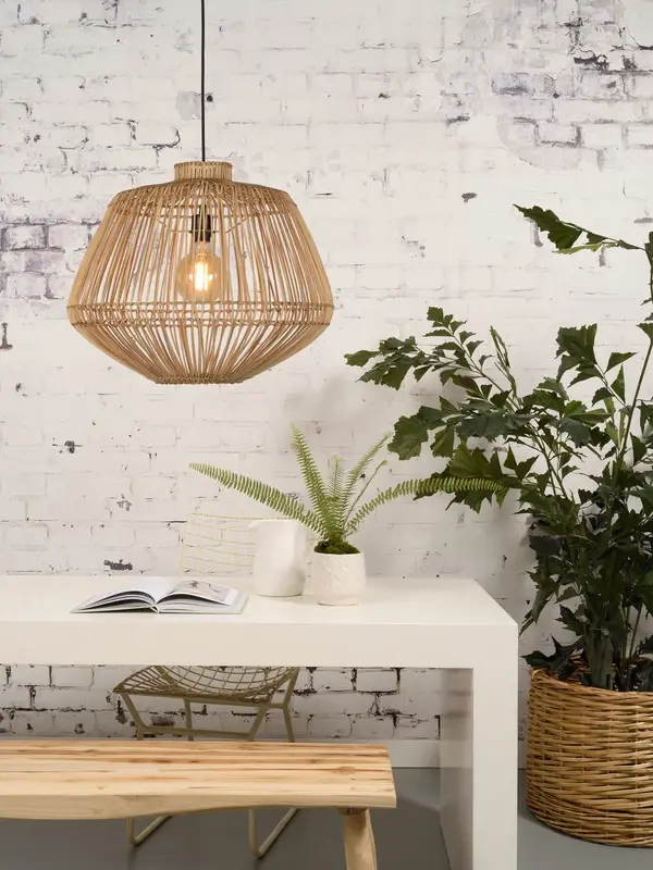 Hanglamp Madagaskar brengt tropische sferen met zich mee. Deze lamp is vernoemd naar het eiland voor de kust van Oost-Afrika, dat bekend staan om hun biodiversiteit. De lamp is handgeweven en verkrijgbaar in de kleuren zwart en naturel. De afmeting is 50xØ60 cm.