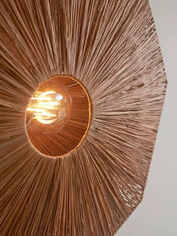 De panama collectie bestaat uit wandlampen en hanglampen. Ze worden gemaakt van het natuurproduct Raffia, dit geeft in elke ruimte een natuurlijke en duurzame uitstraling. Vanwege het geweven structuur schijnt het ligt door het patroon, dit creëert een spel van licht en schaduw in elke ruimte! Raffia is een duurzaam natuurproduct omdat het snel groeit en het kan worden geoogst zonder dat er schade is aan de boom, waardoor de boom kan blijven doorgroeien en het proces opnieuw kan beginnen. Het oogsten tot het verven en verpakken wordt lokaal uitgevoerd met de expertise om ervoor te zorgen dat alleen de beste Raffia wordt geëxporteerd.