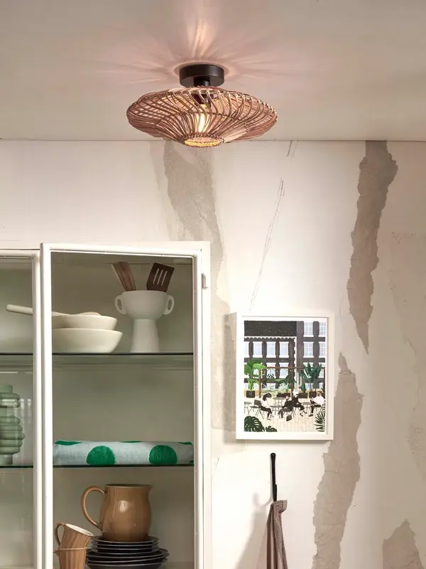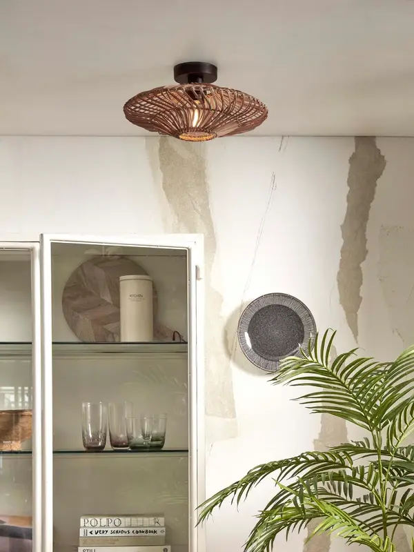 Plafondlamp Zanzibar brengt de tropische sferen van het eiland bij je thuis! Het vlechtwerk van de lamp straalt warmte en sfeer uit. De lamp, handgemaakt van rotan, past perfect in een bohemien of Scandinavisch interieur. Combineer de plafondlamp met de vloer-, hang- en wandlamp Zanzibar voor het complete plaatje in huis. Plafondlamp Zanzibar is 12xØ40 cm en verkrijgbaar in een naturel, zwarte en witte kleur. De lamp wordt zonder lichtbron geleverd.