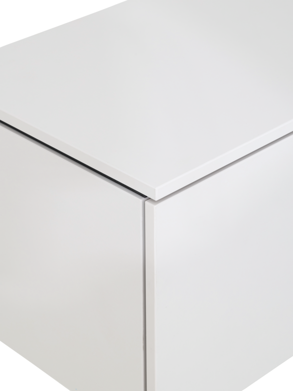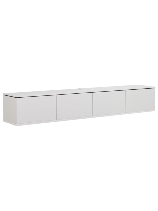 Tate is verkrijgbaar als staand model of in een hangende variant, afhankelijk van de beschikbare ruimte. Daarnaast is het meubel voorzien van een standaard gat voor snoeren, zodat je kabels netjes en onopvallend kunt wegwerken. Ideaal voor een opgeruimd en strak geheel.