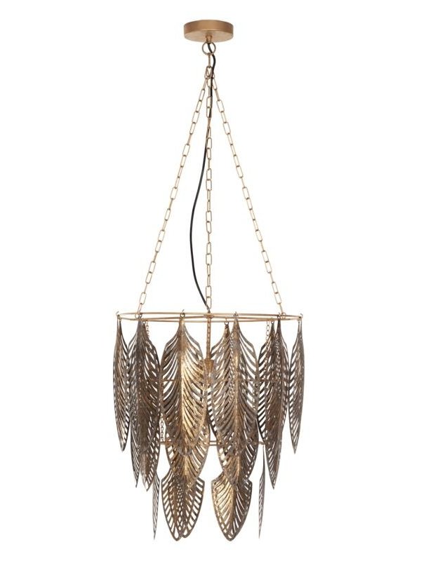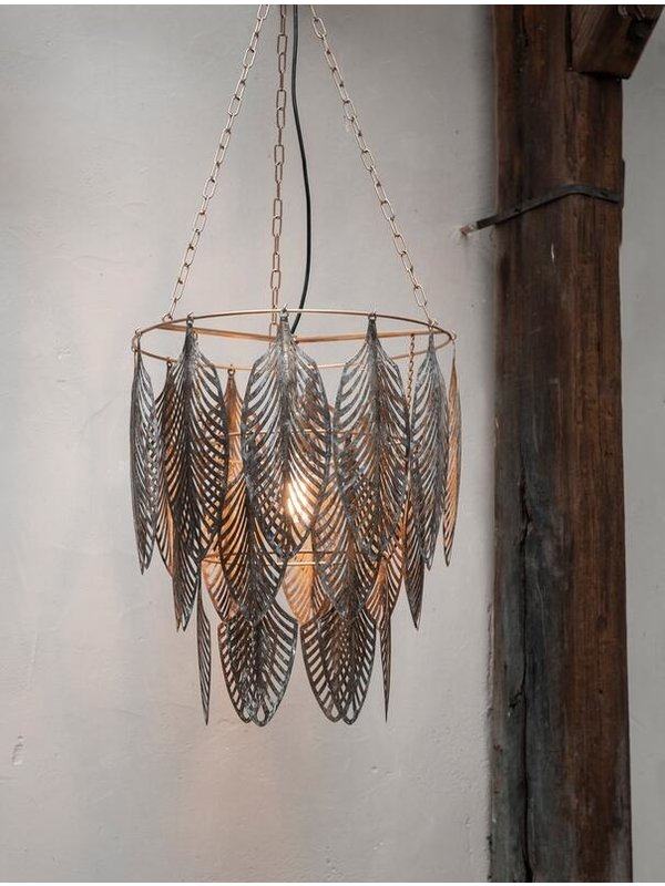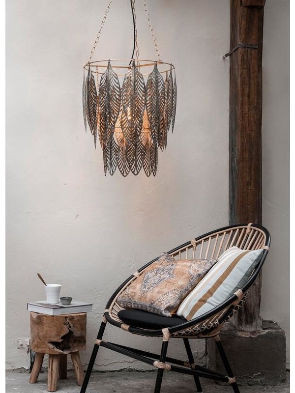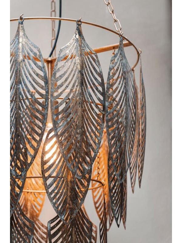 Hanglamp Glamour is de perfecte lamp voor degenen die houden van opvallende items en speelse vormen. Deze bijzondere hanglamp bestaat uit drie lagen met gouden metalen veren. Boven de eettafel in een groepje van twee, maar ook alleen is de lamp echte eyecatcher. Het open en luchtige design zorgt voor een knus schaduwspel op de muur. Zo laat je de zon ook op donkere dagen schijnen.