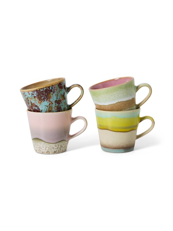 KST0126: 70s ceramics: americano mugs rococo, set van 4