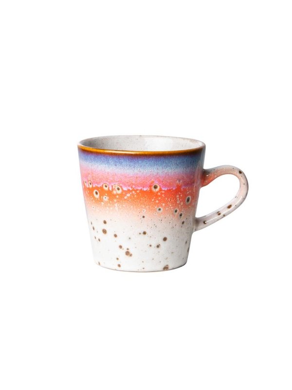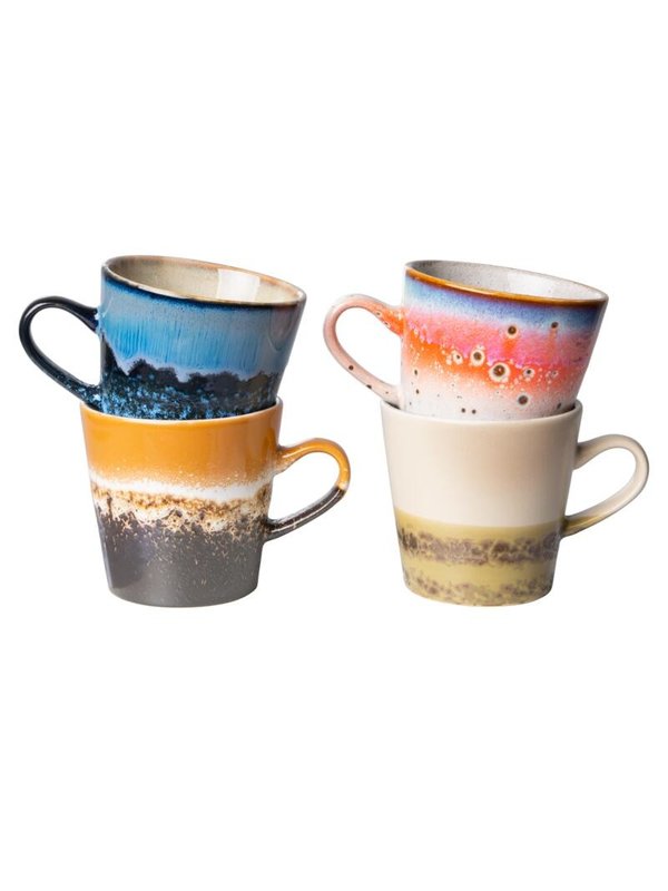 Zet een heerlijke kop koffie of thee in een van de kleurrijke mokken van HK Living. Mok Pegasus is onderdeel van de 70's keramiek collectie van HK Living. Door de verschillende kleuren en patronen zorgen de mokken voor een gezellige sfeer op tafel, in de keuken of in de servieskast. De set mokken Pegasus bestaat uit 4 mokken met elk hun eigen kleur. De mok beschikt over een oor en heeft een afmeting van 8x11x8,5cm. Door de ruime inhoud van 260ml kan jij een heerlijke kop drinken voor jezelf maken!