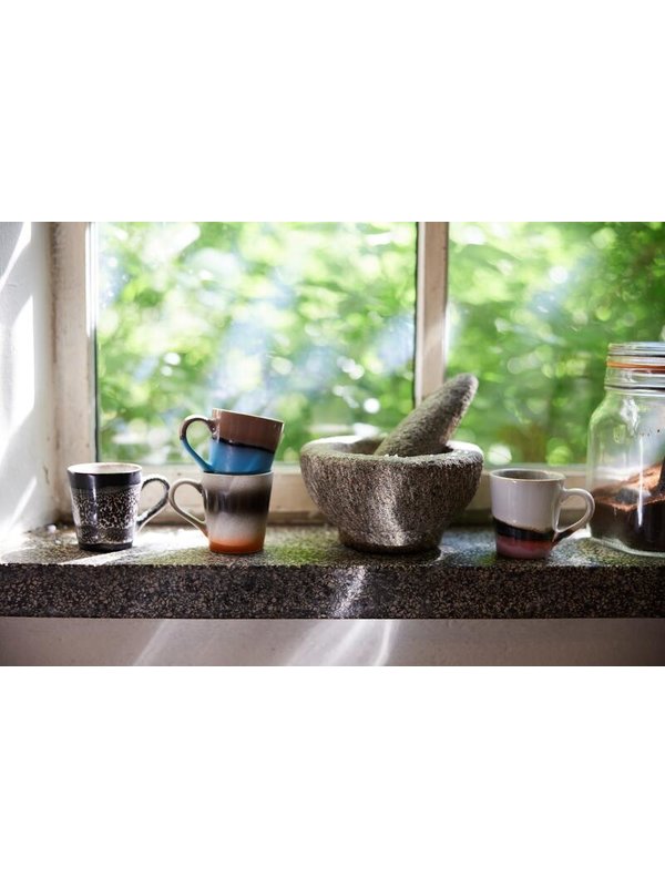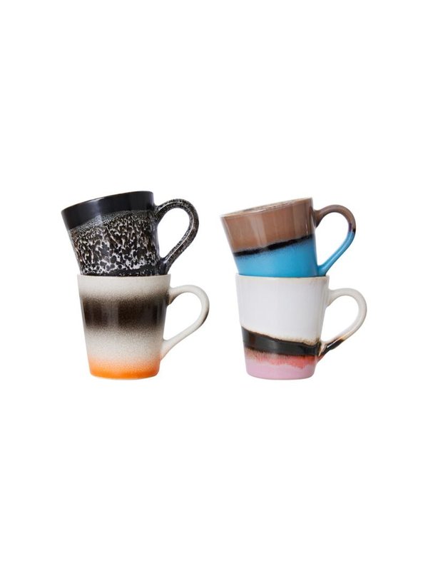Drink je espresso uit een van de gezellige koffiekopjes van HK Living. Kopje Funky is onderdeel van de 70's keramiek collectie van HK Living. De verschillende kleuren en patronen zorgen voor een gezellige sfeer op tafel en in de servieskast. De set espresso kopjes Funky bestaat uit 4 kopjes met elk een eigen kleur.