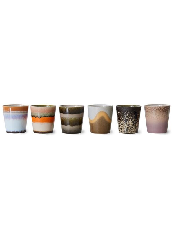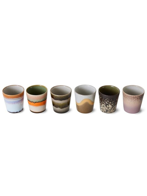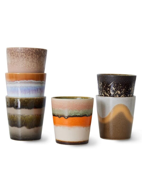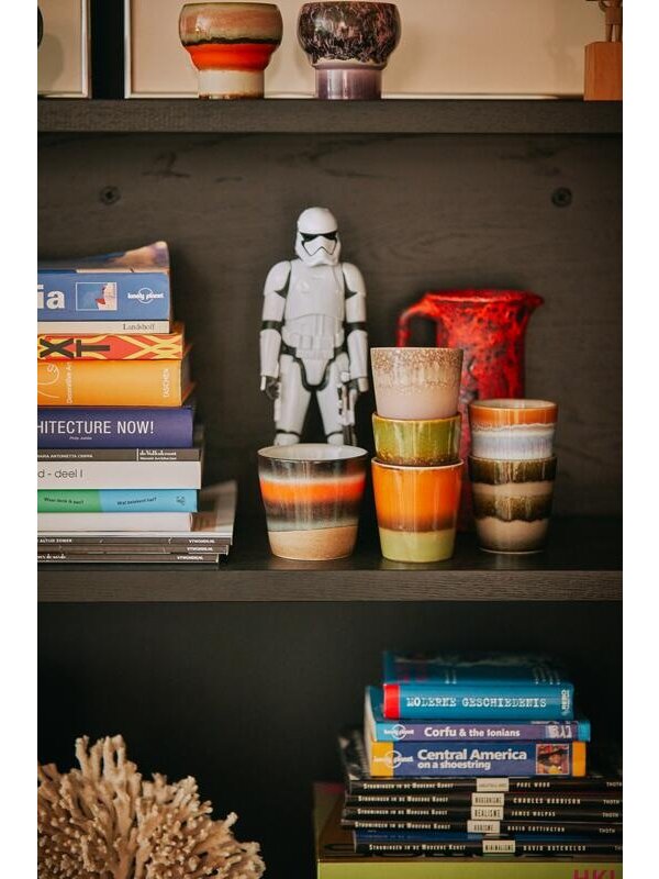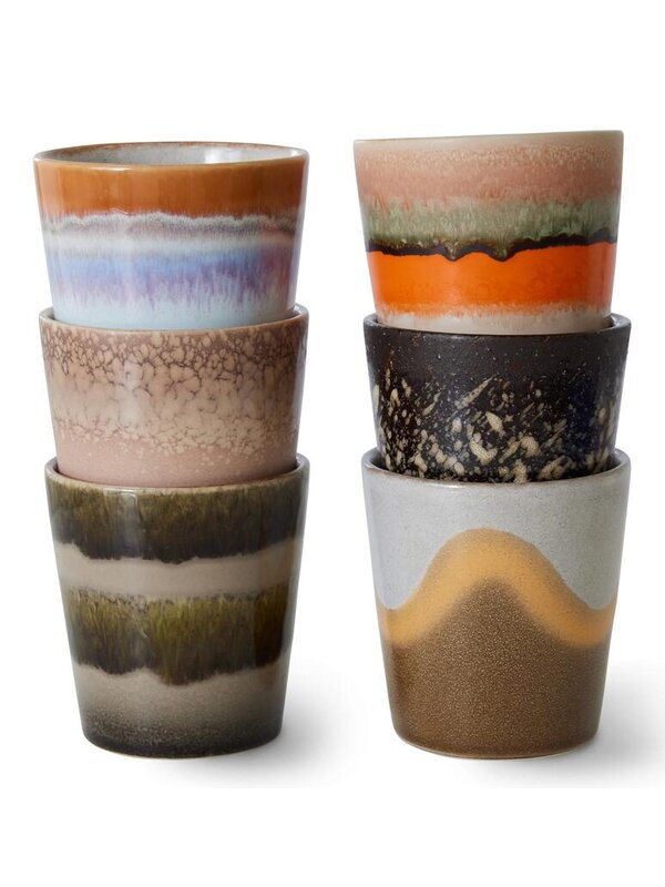 Een favoriet aller tijden: de ouderwetse drip, de trendy Americano of de perfecte slow coffee. De koffiemokken hebben een inhoud van 180 ml, dus ruim voldoende om jouw geliefde mok te vullen. Dankzij de aardse elementen en natuurlijke kleuren is dit de meest relaxte serie uit de retro jaren 70 keramiekcollectie. De spannende kleurcomposities en gestructureerde, met de hand afgewerkte oppervlakken maken elk stuk uniek.