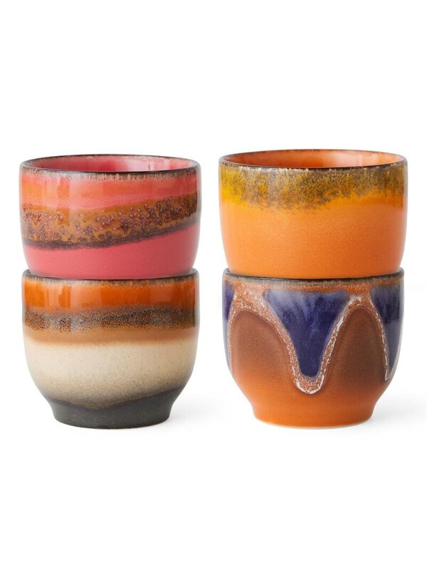 Geniet van al jouw koffiemoment met de 70's Ceramic koffiekop set van 4 van HKliving. Geïnspireerd door het kleurrijke en speelse design uit de jaren '70, brengt deze set van vier koffiekopjes een vleugje retro charme in jouw keuken. Elk kopje is vervaardigd uit keramiek en zijn voorzien van een uniek, organisch patroon, waardoor elk stuk een eigen karakter heeft. De levendige kleuren en gedurfde ontwerpen brengen een uniek flair naar jouw koffiemomenten, terwijl het comfortabele formaat perfect is voor jouw favoriete espresso's, cappuccino's of latte's. Of je nu geniet van een rustige ochtendkoffie of een gezellige middagpauze met vrienden, de 70's Ceramic koffiekopje biedt het perfecte servies voor elke gelegenheid.
