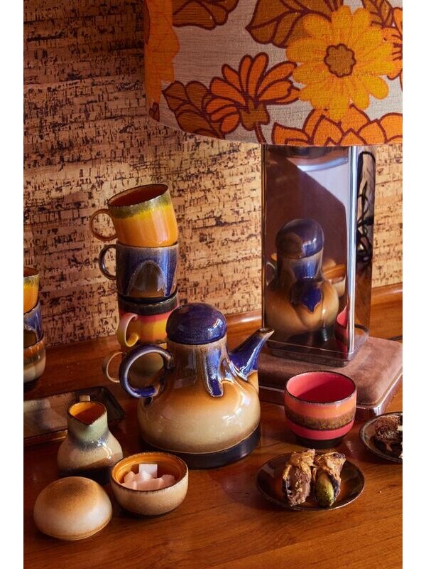 Breng een vleugje nostalgie in je keuken met de 70's Ceramic koffiepot van HKliving. Geïnspireerd door het kleurrijke en speelse design uit de jaren '70, brengt deze koffiepot een vleugje retro charme in je dagelijkse koffiemomenten. De levendige kleuren en organische vormen roepen herinneringen op aan vervlogen tijden, terwijl ze tegelijkertijd een frisse en eigentijdse uitstraling behouden. De koffiepot is niet allee een lust voor het oog, maar ook een praktisch in gebruik. Met zijn ruime capaciteit en stevig handvat is hij perfect voor het serveren van heerlijke koffie aan familie en vrienden tijdens ontspannen ochtenden of gezellige middagen.