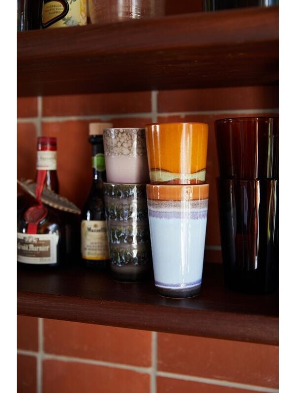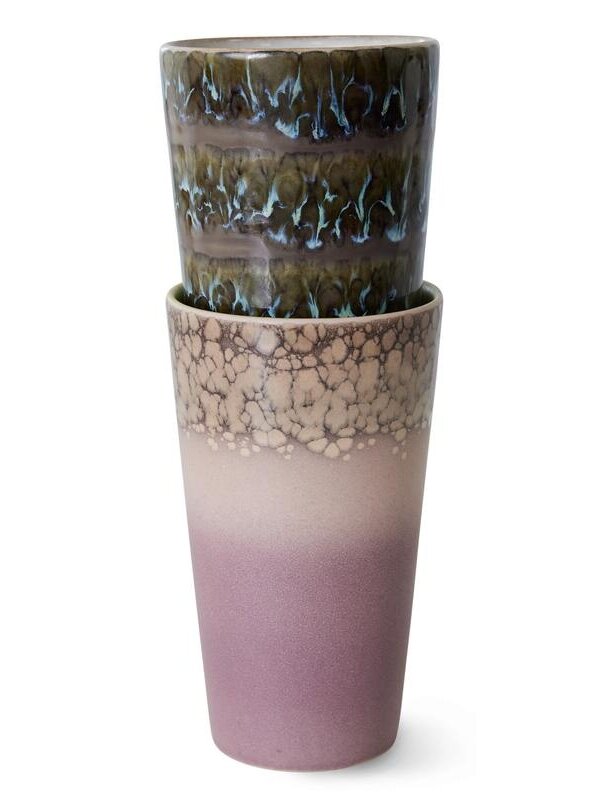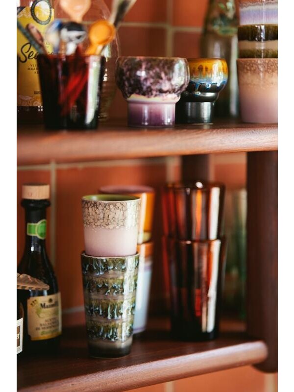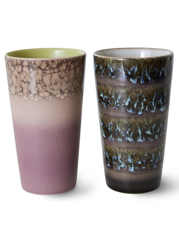 Waan je in de jaren 70 met de 70's Ceramic Latte mokken van HKliving. De set bestaat uit twee verschillende mokken, uitgevoerd in nostalgische retro kleuren en een ongepolijste afwerking. Daarnaast zijn de mokken handgemaakt, waardoor ieder item een eigen karakter heeft. De mokken zijn een prachtige blikvanger in verschillende interieurstijlen, maar kunnen ook goed gecombineerd worden met andere items uit de 70's Ceramic collectie van HKliving.