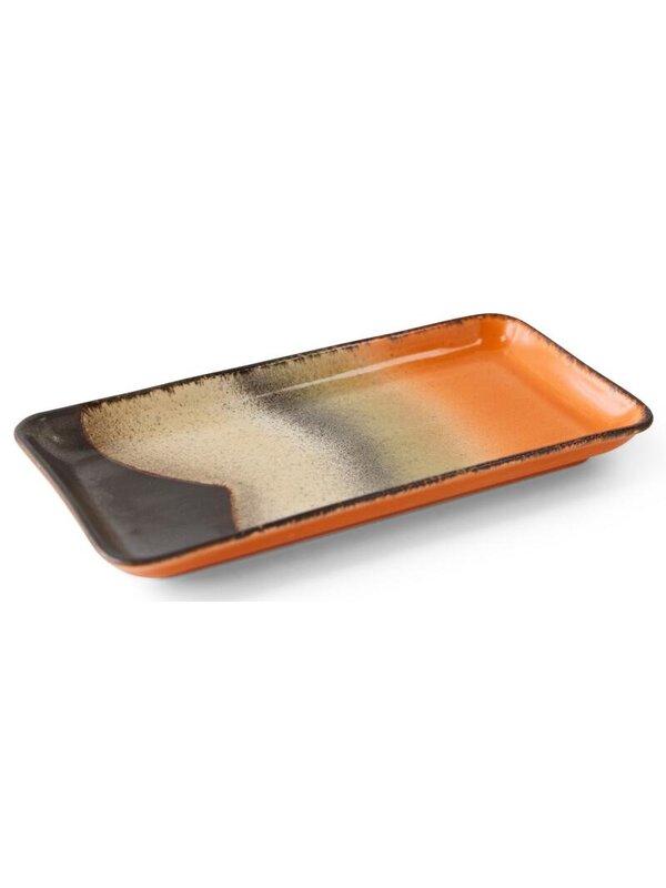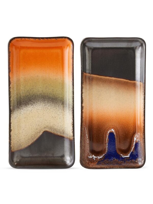 Voeg een vleugje retro toe aan jouw tafelsetting met de 70's Ceramic dienblad 18,5x9 set van 2 van HKliving. Geïnspireerd door het kleurrijke en speelse design uit de jaren 70, biedt deze set van twee dienbladen een unieke mix van functionaliteit en stijl. De dienbladen zijn vervaardigd uit keramiek en voorzien van een eigenzinnig, organisch patroon waardoor elk stuk een eigen karakter heeft. De levendige kleuren en gedurfde ontwerpen brengen een speelse flair naar jouw tafel setting, terwijl het compacte formaat perfect is voor het serveren van hapjes, snacks of als decoratieve accenten.