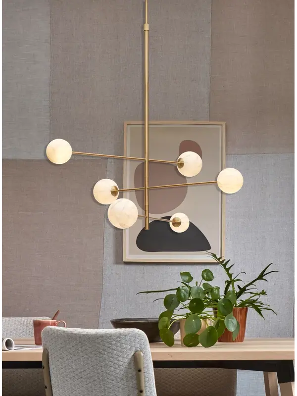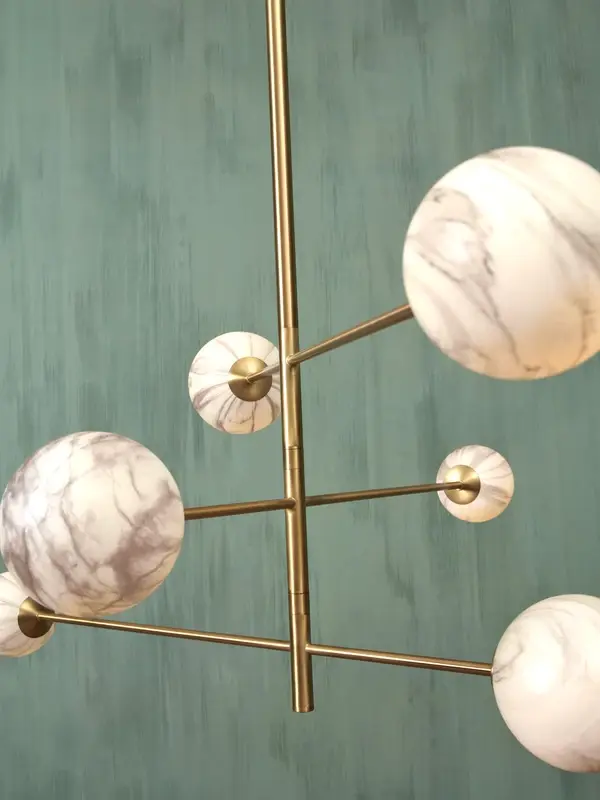 Hanglamp Carrara is chic en super trendy. De lamp kenmerkt zich door de glazen bol, afgewerkt met een marmerachtige print. Geen wonder ook dat de lamp de naam Carrara kreeg. Deze Italiaanse stad is namelijk dé marmerhoofstad van de wereld. De marmeren afwerking zorgt ervoor dat de lamp prachtig diffuus licht afgeeft. Zo heeft Carrara wel wat weg van een sfeervol schijnende maan in het donker! De hanglamp is afgewerkt met gouden details van ijzer. Hanglamp Carrara heeft een afmeting van 95x100 cm. De bollen hebben een afmeting van Ø10 cm en Ø13 cm. Alle lampen van It's about RoMi worden geleverd exclusief lichtbron.