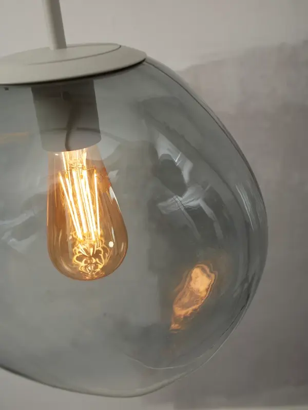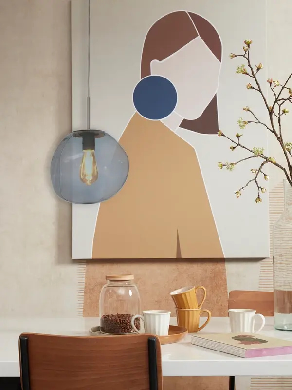 Hanglamp Helsinki is een verfijnde blikvanger met een uniek ontwerp. Het amberkleurige glas voegt warmte en stijl toe, terwijl de surrealistische vorm een artistiek tintje geeft aan het geheel. Deze hanglamp combineert moeiteloos een eigentijdse uitstraling met een vleugje kunstzinnigheid, een aanwinst voor elke ruimte.