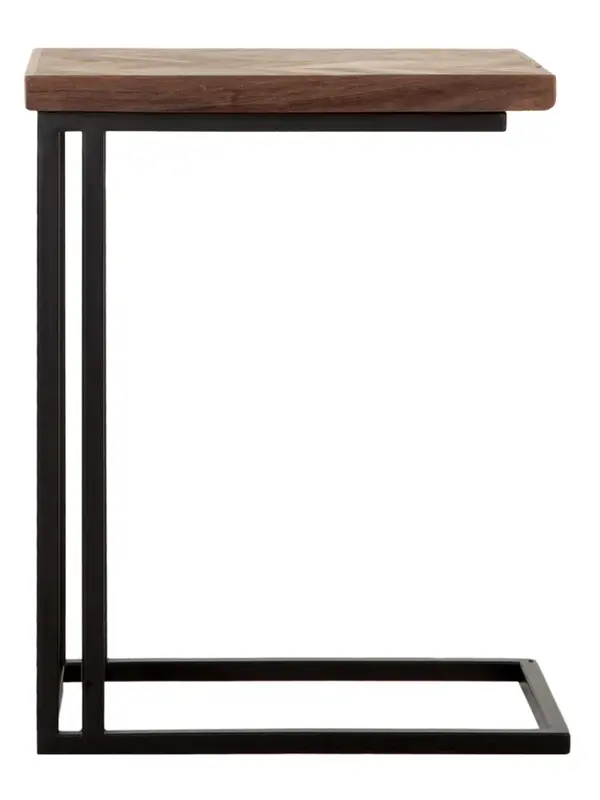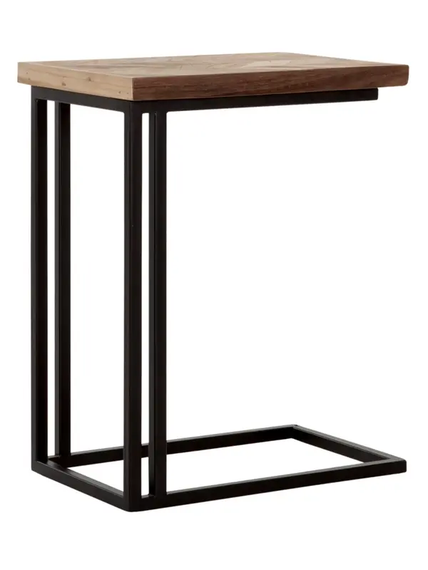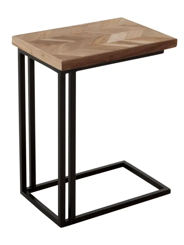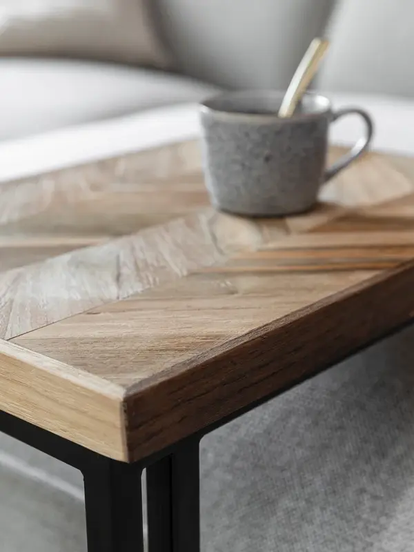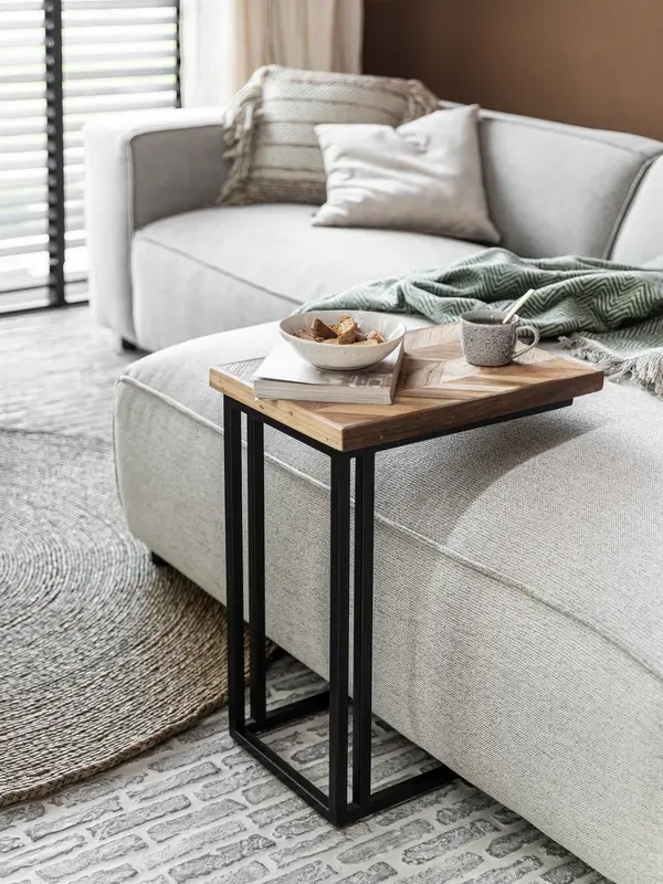 Laptoptafel Fishbone schuif je gemakkelijk bij de bank. De tafel heeft een prachtig, houten blad in visgraatpatroon en staat op een kubistisch zwartstalen onderstel. Fishbone is ideaal als je nog even wat werk wil doen op de bank, of wanneer je je kopje thee lekker bij de hand wilt hebben. Laptop Fishbone heeft een afmeting van 62x48x33 cm.