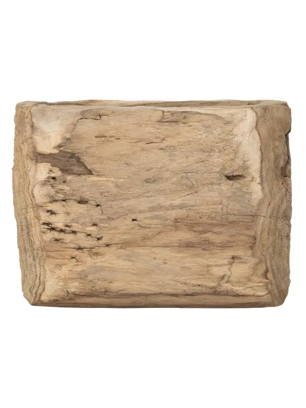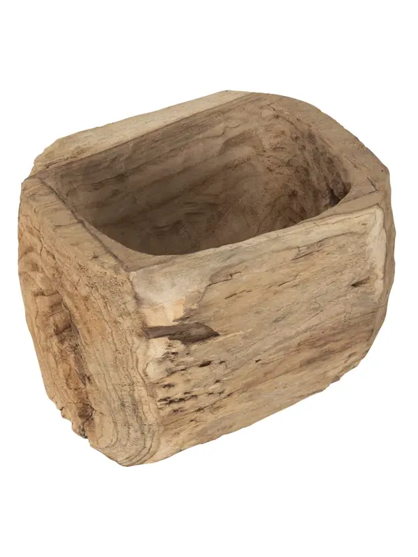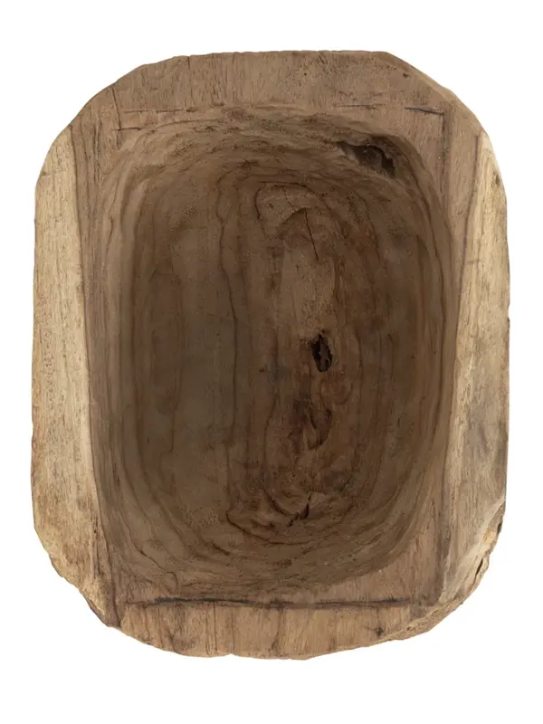 Deze hergebruikte kom, die oorspronkelijk voor dagelijks gebruik werd ontworpen, krijgt nu een nieuwe functie. Gemaakt van gerecycled teakhout, heeft de kom een robuuste uitstraling die goed past in elk interieur. Het is een unieke toevoeging die niet alleen visueel interessant is, maar ook perfect geschikt is om kleine voorwerpen in te bewaren.