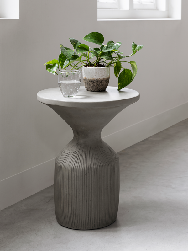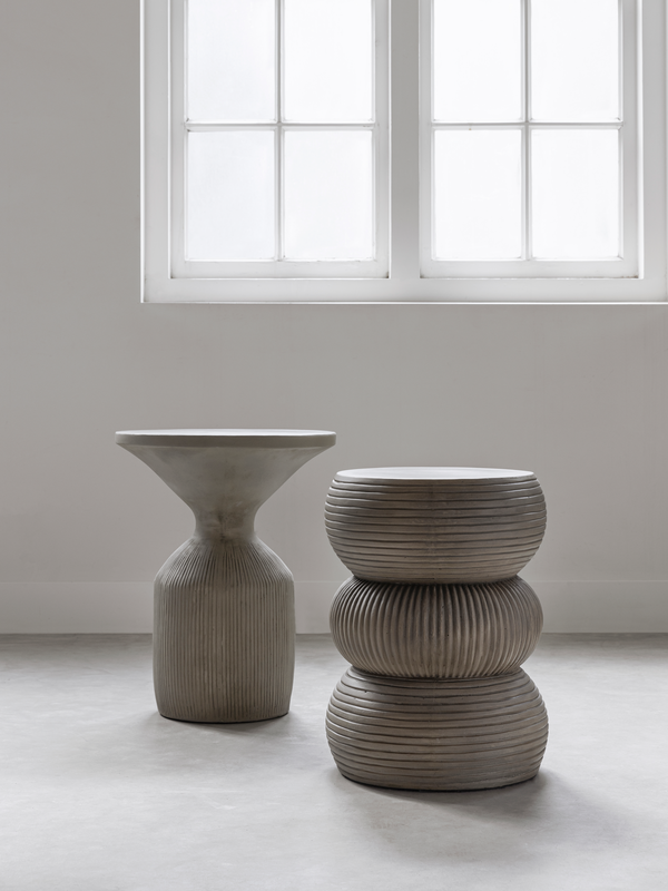 Deze bijzettafels zijn gemaakt van ciber cement, een sterk materiaal met een unieke steenstructuur. Flora en Slice zijn multifunctioneel. Gebruik ze als praktische bijzettafel met wat accessoires, of schuif ze gemakkelijk bij de zit- of eethoek voor een extra zitplek!