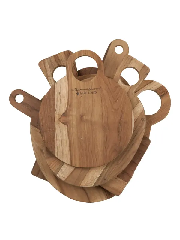 De handgemaakte broodplanken en schalen van MUST Living zijn gemaakt van hoogwaardig teakhout en behandeld met een speciale waslaag die geschikt is voor consumptie. Ook als accessoire in de keuken of op de eettafel doen ze het goed!