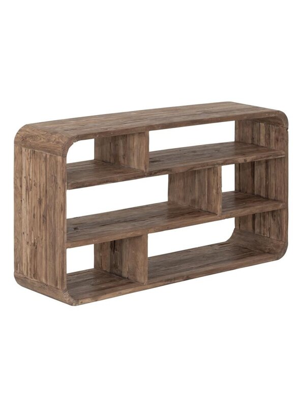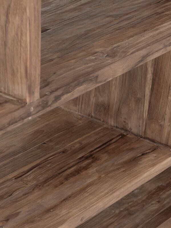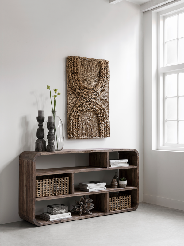 De Corso collectie van het merk MUST Living is gemaakt van extreem rustiek teakhout, waarbij elk stuk uniek is. De ronde vormen dragen bij aan een zachte, speelse look die het ontwerp versterkt. Dankzij het open design komt de natuurlijke schoonheid van het hout volledig tot zijn recht, terwijl de meubels tegelijkertijd functionele opbergruimte bieden zonder de ruimte te overweldigen.