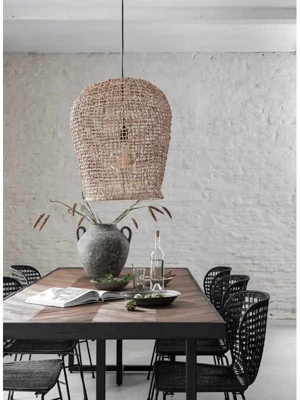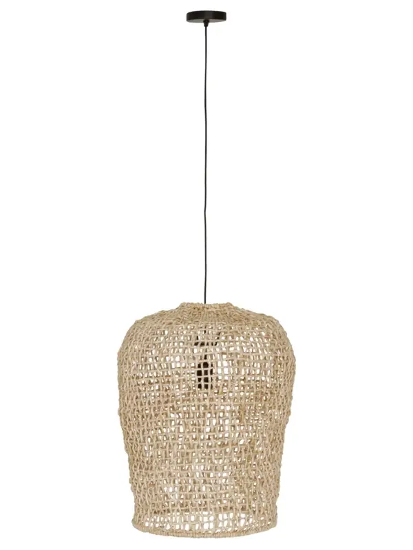 Hanglamp Formentera van het merk Must Living is gemaakt van bananenblad. Dit bijzondere materiaal is verwerkt in een mooi patroon, waardoor een prachtig lichtspel ontstaat. De lamp heeft een afmeting van 50xØ45 cm.